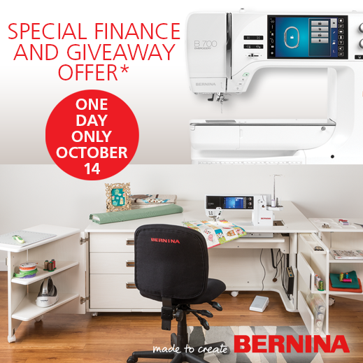Also, a finance offer of 0% interest for 72 months on BERNINA purchases of $5000 or more.