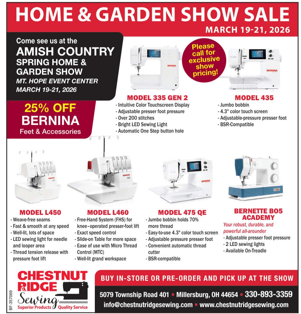 In addition to new machines, we will also have a limited supply of demo BERNINA 335s. Contact CRS at 330-893-3359 for your special pricing!